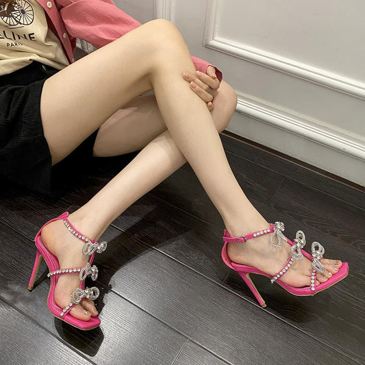 Syncreas Fashion Rhinestone Bow Flower Toe High Heels