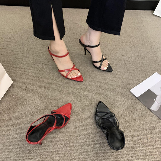 Syncreas Wine Red Women's High Heels Stiletto Sandals