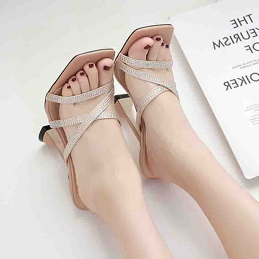 Syncreas Rhinestone Cross Strap High Heels