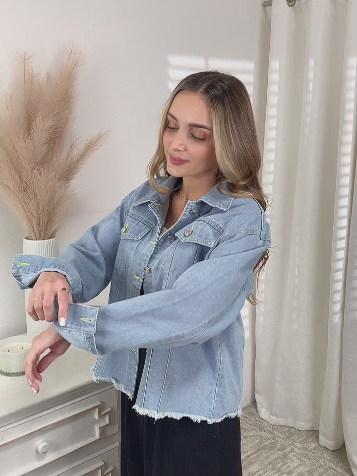 Double Take Dropped Shoulder Raw Hem Denim Jacket