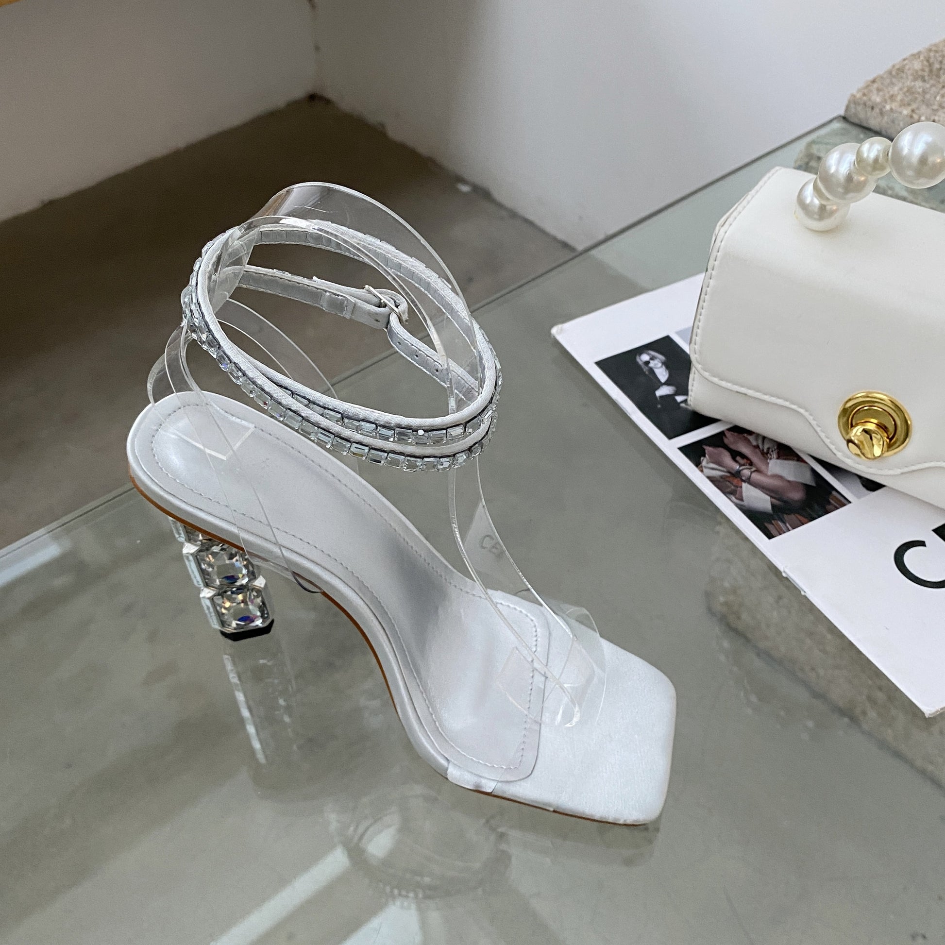 Syncreas Rhinestone Ankle Strap Crystal Heel High Heels