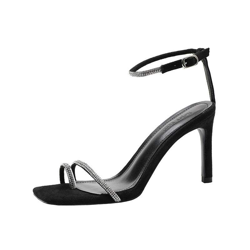Syncreas Stiletto Square Toe Rhinestone Sexy Ladies Fashion High Heels